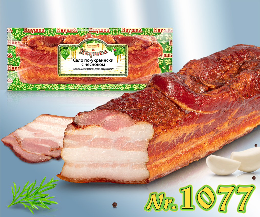 Panceta de cerdo en salmuera, bien cocida y ahumada. Ingredientes: Panceta de cerdo, sal, jarabe de glucosa, estabilizante: difosfato, antioxidantes: ascorbato sódico, extractos de especias, especias, conservante: nitrito sódico, humo. Valor nutricional por 100 g: Valor energético: 1591 kJ / 385 kcal, Grasas: 35 g, de las cuales saturadas: 15 g, Hidratos de carbono: <0,5 g, de los cuales azúcares: <0,5 g, Proteínas: 17 g, Sal: 3,4 g,