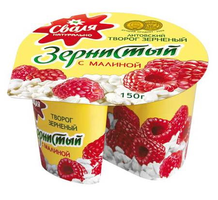 Зернистый творог с малиной 12x150гр SVALIA