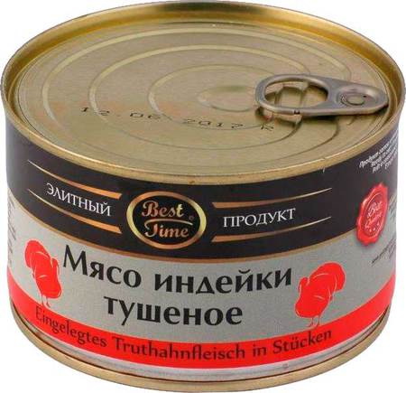 Количество товара Мясо индейки тушеное 400гр.BEST TIME