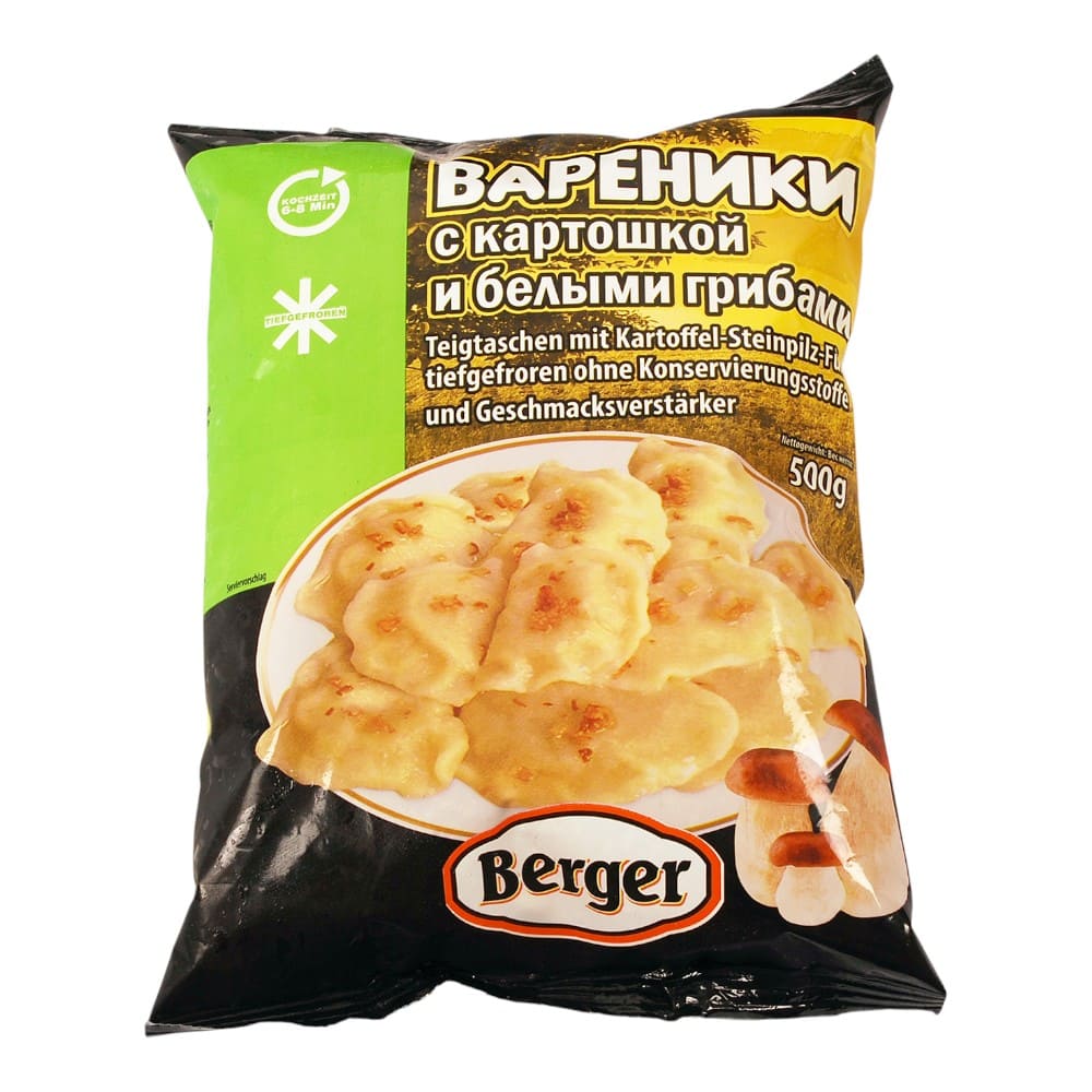 Вареники с картошкой и белыми грибами 12х500гр.BERGER