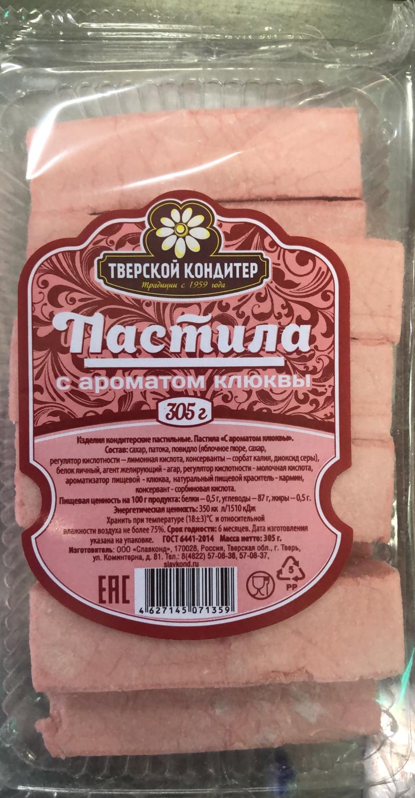 Пастила с ароматом клюквы 305гр.ТВЕРСКОЙ КОНДИТЕР