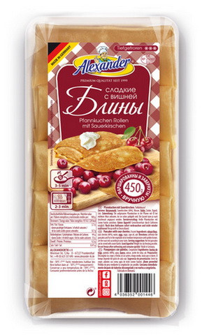Блины сладкие с вишней замороженные 20x450гр.АЛЕКСАНДР