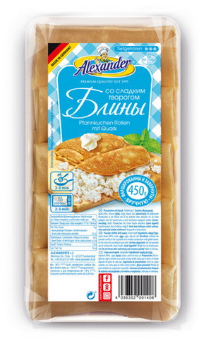 Блины замороженные со сладким творогом 20x450гр.АЛЕКСАНДР