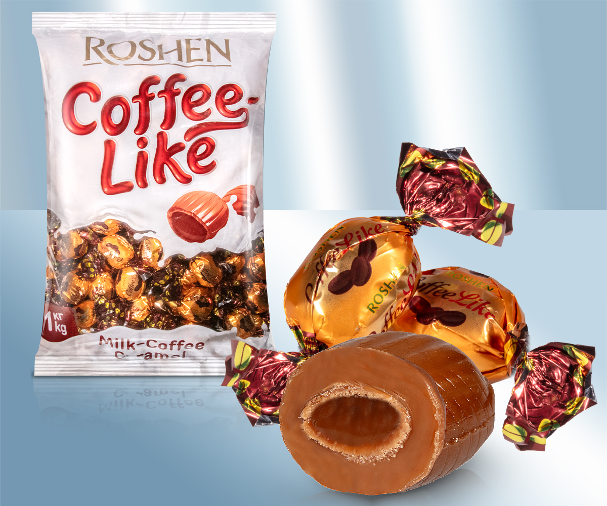 Tвердая карамель с начинкой, со вкусом капучино. .
