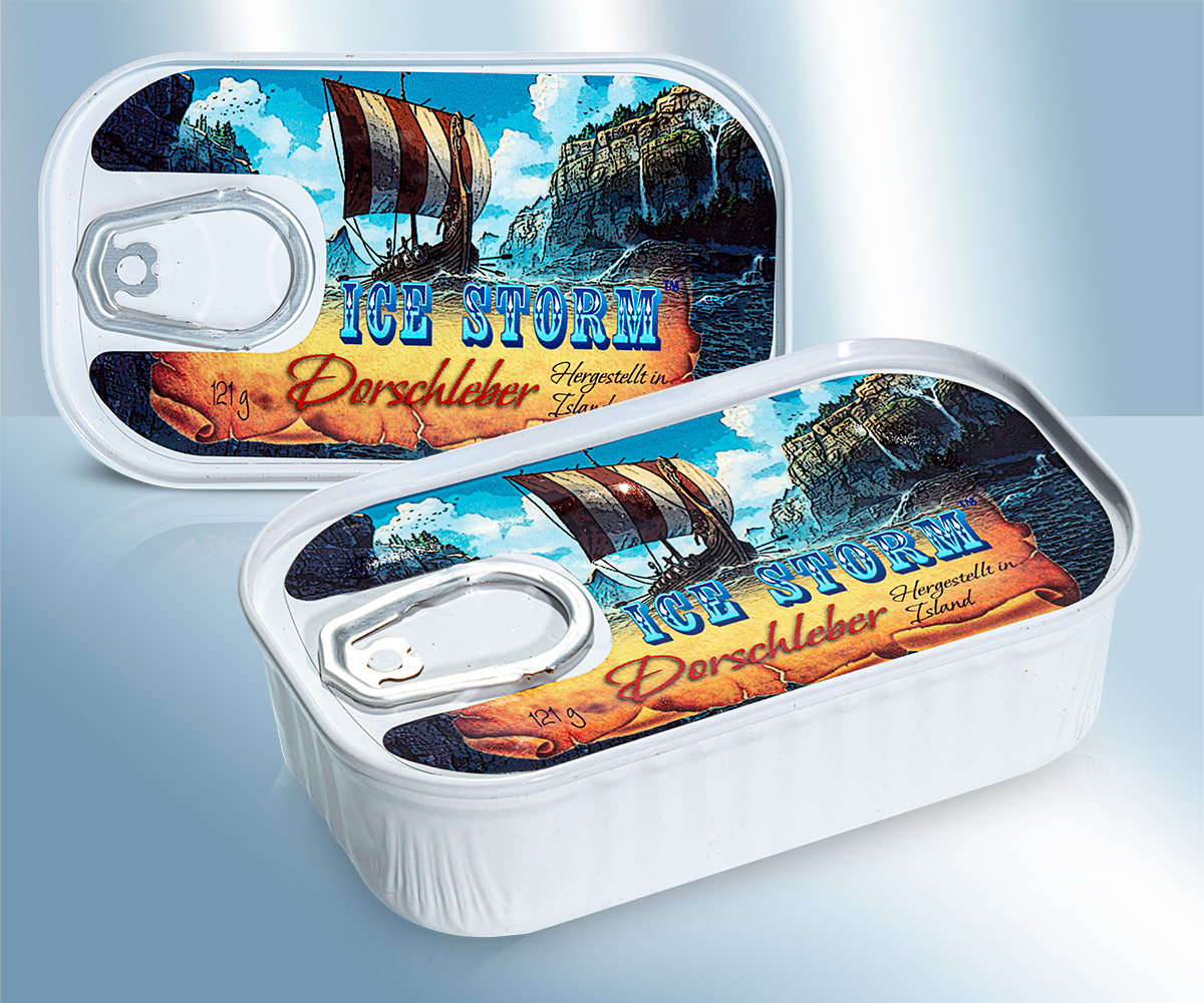 печень трески в собственном соку и масло.. Район рыбного промысла: треска (Gadus Morhua): Северо-Восточная Атлантика, Шельф Исландии. Метод улова: крючки и донные крючковые снасти и/или кошельковые неводы и/или жаберные сети и аналогичные сети. Состав: печень трески 99%*, пищевая соль. *Доля содержания печени трески в момент перерабтки. При нагревании возможно уменьшение веса. Минимальный срок хранения в закрытом виде составляет до: см. Оттиск, вторая строка. После вскрытия упаковки хранить в холодильнике. Употребить в течение 3 суток после вскрытия упаковки. Сбыт: Lackmann Fleisch- und Feinkostfabrik GmbH, Carl Benz Straße 10, 77731 Willstätt, Германия. Пищевая ценность на 100g: Энергетическая ценность: 1611 kJ / 386 kcal, Жиры: 39g, - из них насыщенных жирных кислот: 8,0g, Углеводы: <0,5g, - из них сахара: <0,5g, Белки: 8,5g, Соль: 1,0g,