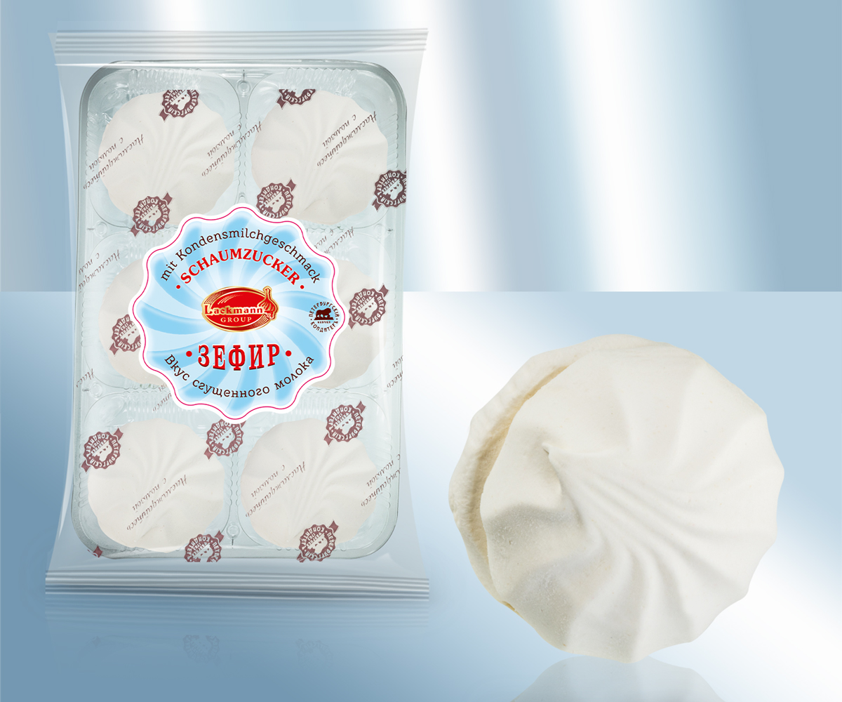 Зефир со вкусом сгущенного молока. . Состав: сахар, крахмальная патока, вода, яблочное пюре, белок куриного яйца, желирующее вещество: E440, pегулятор кислотности: E270, регулятор влажности: E325, консервирующее вещество: диоксид серы, ароматизатор. Хранить в сухом прохладном месте. Защитить от прямых солнечных лучей. Употребить до: Пищевая ценность на 100g: пищевые волокна: 1,0г. Сбыт: Lackmann Fleisch- und Feinkostfabrik GmbH, Carl-Benz-Straße 10, 77731 Willstätt, Deutschland. Пищевая ценность на 100g: Энергетическая ценность: 1417 kJ / 333 kcal, Жиры: 0g, - из них насыщенных жирных кислот: 0g, Углеводы: 82g, - из них сахара: 76g, Белки: <0,5g, Соль: 0,03g,