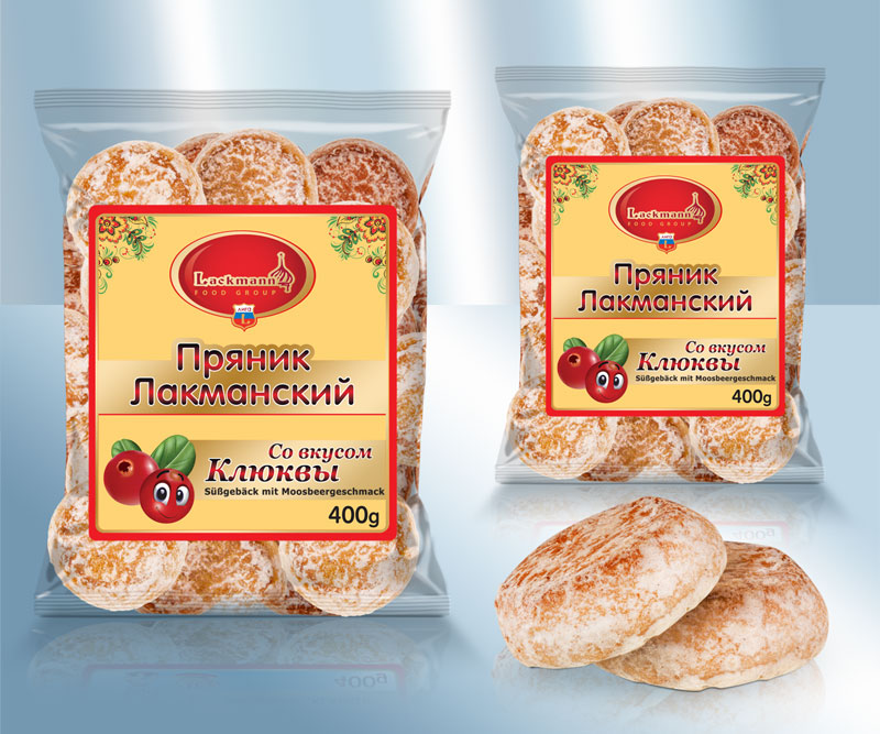 Пряники "Клюквенные" . Состав: пшеничная мука, сахар, инвертный сахарный сироп (сахар, вода, pегулятор кислотности: (E330, E500)), глюкозно-фруктозный сироп, растительные жиры и масла (ши (масляное дерево), пальма), порошок цельного яйца, Разрыхлитель теста: (E500, E503), ароматизатор. Данный продукт может содержать следы: Горчица, овес, рожь, ячмень, молоко, Арахис, Орехи, соя, кунжут. Хранить в сухом прохладном месте. Сбыт: Lackmann Fleisch- und Feinkostfabrik GmbH, Carl Benz Straße 10, 77731 Willstätt, Германия. Употребить до: см. оттиск на упаковке, См. на лицевой стороне. Пищевая ценность на 100g: Энергетическая ценность: 1568 kJ / 370 kcal, Жиры: 4,5g, - из них насыщенных жирных кислот: 1,8g, Углеводы: 77g, - из них сахара: 42g, Белки: 5,9g, Соль: 0,10g,