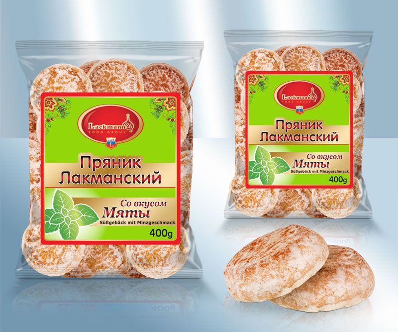 Пряники "Мятные" . Состав: пшеничная мука, сахар, инвертный сахарный сироп (сахар, вода, pегулятор кислотности: (E330, E500)), глюкозно-фруктозный сироп, растительные жиры и масла (ши (масляное дерево), пальма), порошок цельного яйца, Разрыхлитель теста: (E503, E500), ароматизатор. Данный продукт может содержать следы: овес, рожь, Горчица, ячмень, молоко, Арахис, Орехи, соя, кунжут. Хранить в сухом прохладном месте. Сбыт: Lackmann Fleisch- und Feinkostfabrik GmbH, Carl Benz Straße 10, 77731 Willstätt, Германия. Употребить до: см. оттиск на упаковке, См. на лицевой стороне. Пищевая ценность на 100g: Энергетическая ценность: 1568 kJ / 370 kcal, Жиры: 4,5g, - из них насыщенных жирных кислот: 1,8g, Углеводы: 77g, - из них сахара: 42g, Белки: 5,9g, Соль: 0,10g,