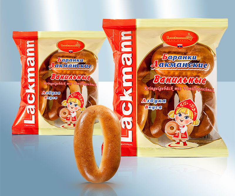 Баранки ванильные.. Состав: пшеничная мука, сахар, рапсовое масло, дрожжи, пищевая соль, ржаная мука, фермент (содержит пшеница, соя), ароматизатор, антиоксиданты: (аскорбиновая кислота), консервирующее вещество: (cорбиновая кислота). Данный продукт может содержать следы: яйца, арахисовые орехи, молоко, кунжут. Хранить в сухом прохладном месте. Употребить до: см. оттиск обратная сторона. Сбыт: Lackmann Fleisch- und Feinkostfabrik GmbH, Carl Benz Straße 10, 77731 Willstätt, Германия. Пищевая ценность на 100g: пищевые волокна 3,7г. Пищевая ценность на 100g: Энергетическая ценность: 1543 kJ / 366 kcal, Жиры: 7,3g, - из них насыщенных жирных кислот: <0,1g, Углеводы: 64g, - из них сахара: 12g, Белки: 8,9g, Соль: 0,77g,