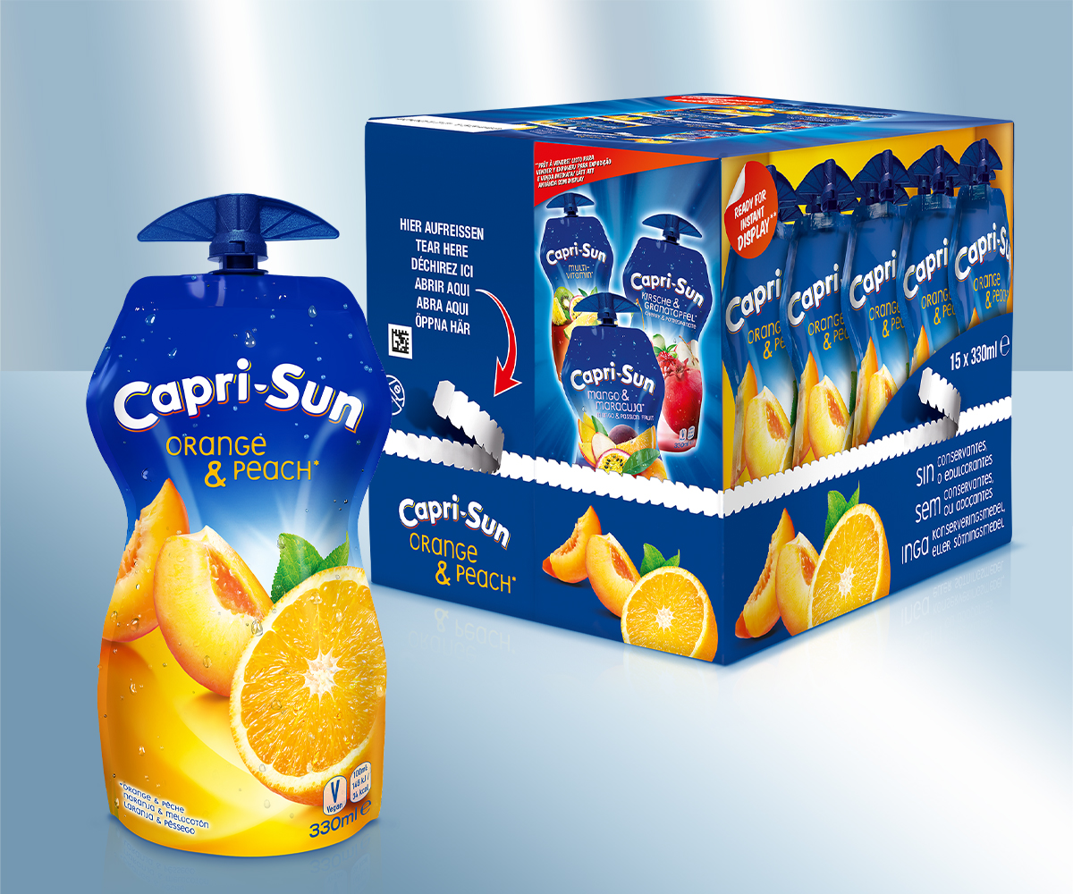 Фруктовый напиток апельсины, персик. . Содержание фруктов не менее 10 %. Состав: вода, сахар, Фруктовый сок из концентрата фруктового сока (апельсины 5%, яблоко 3%, персик 2%, Подкислитель: (лимонная кислота), ароматизатор, aнтиоксиданты: аскорбиновая кислота. Хранить в сухом прохладном месте. Употребить до: см. ниже, см. оттиск. Сбыт: Lackmann Fleisch- und Feinkostfabrik GmbH, Carl Benz Straße 10, 77731 Willstätt, Германия. Пищевая ценность на 100g: Энергетическая ценность: 146 kJ / 34 kcal, Жиры: <0,5g, - из них насыщенных жирных кислот: <0,1g, Углеводы: 8,2g, - из них сахара: 8,2g, Белки: <0,5g, Соль: <0,1g,