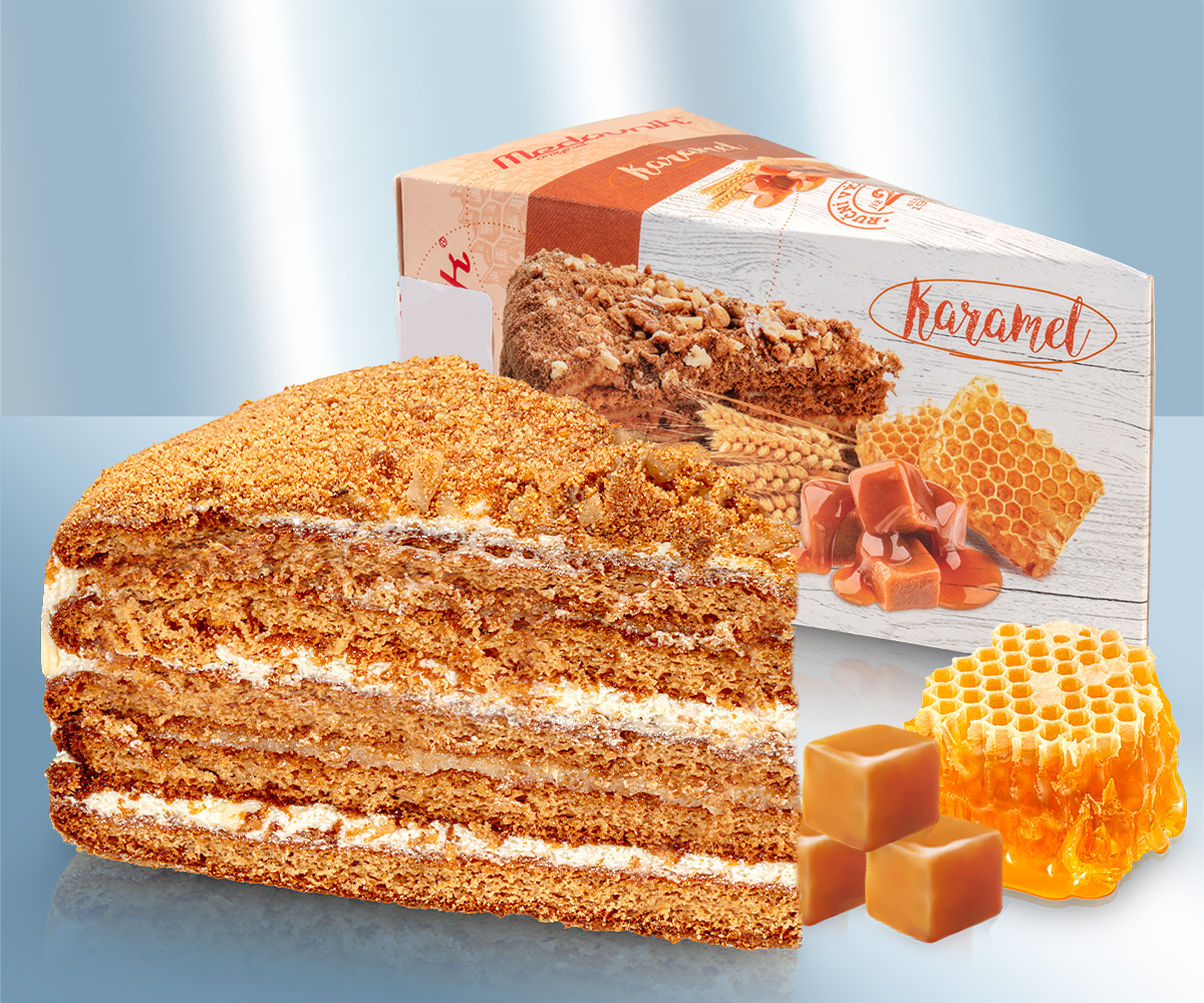 Состав: Начинка (карамелизированный сахар, питьевая вода, сухое обезжиренное молоко, пальмовое масло, глюкозный сироп, загуститель: (хлорид кальция, каррагинан, пектин), Кукурузный крахмал, ароматизатор, cтабилизатор: фермент, консервирующее вещество: cорбиновая кислота), пшеничная мука, сахарная пудра, сметана (сливки, картофельный крахмал, молочнокислые культуры), растительные жиры и масла в изменяемых весовых долях частично отвержденное (пальма, рапс, подсолнух, кокосовый орех), масло сливочное, питьевая вода, Йогурт из обезжиренного молока, пахта, яйцо, соль, мед 3%, грецкий орех 2%, сгущенное молоко с сахаром (цельное молоко, сахар, лактоза), Эмульгаторы: (Моно-и диглицериды жирных кислот, Полиглицериновые эфиры пищевых жирных кислот), консервирующее вещество: (сорбат калия), Краситель: (бета-каротин), pегулятор кислотности: (лимонная кислота), ароматизатор, Разрыхлитель теста: (бикарбонат натрия), инвертный сахарный сироп, сахар, карамелизированный сахар, глюкозный сироп, ароматизатор. Срок хранения при ≤ -18 °C до: см. дату сбоку (соответствует номер партии). Размороженный продукт не замораживать повторно. После размораживания хранить при температуре максимум 1-8 °C 7 дней. Сбыт: Lackmann Fleisch- und Feinkostfabrik GmbH, Carl Benz Straße 10, 77731 Willstätt, Германия. Пищевая ценность на 100g: Энергетическая ценность: 1620 kJ / 388 kcal, Жиры: 19g, - из них насыщенных жирных кислот: 11g, Углеводы: 48g, - из них сахара: 25g, Белки: 6,6g, Соль: 0,60g,