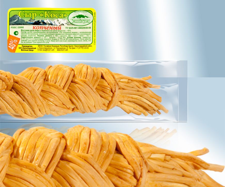 сыр-косичка копченый (сыр Паста Филата), 40% жир в сухом веществе. .