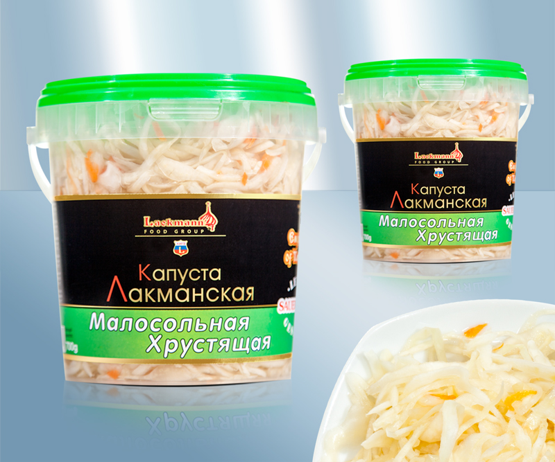 белокочанная капуста, слегка подсоленный. сухой вес: 700г. Состав: белокочанная капуста 73%, питьевая вода, морковь, пищевая соль, сахар, антиоксиданты: (аскорбиновая кислота), консервирующее вещество: (сорбат калия). Неоткрытый продукт хранить при +2 °C - +6 °C и использовать до: см. крышку. Сбыт: Lackmann Fleisch- und Feinkostfabrik GmbH, Carl Benz Straße 10, 77731 Willstätt, Германия. Пищевая ценность на 100g: Энергетическая ценность: 89 kJ / 21 kcal, Жиры: 0g, - из них насыщенных жирных кислот: 0g, Углеводы: 3,2g, - из них сахара: 1,7g, Белки: 0,9g, Соль: 1,2g,