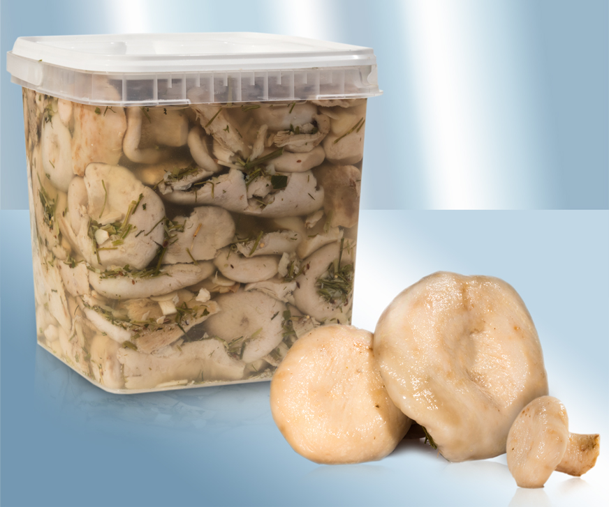Грузди соленый (Lactarius resimus). сухой вес: 4,5 кг. Состав: Грузди, вода, пищевая соль, cпеции, травы, хрен сушеный. Товар продавать только неупакованным. Срок хранения при +2 °C - +4 °C до: см. крышку. Сбыт: Lackmann Fleisch- und Feinkostfabrik GmbH, Carl Benz Straße 10, 77731 Willstätt, Германия. Пищевая ценность на 100g: Энергетическая ценность: 79 kJ / 19 kcal, Жиры: 0,8g, - из них насыщенных жирных кислот: 0g, Углеводы: 1,1g, - из них сахара: <0,5g, Белки: 1,8g, Соль: 4,0g,