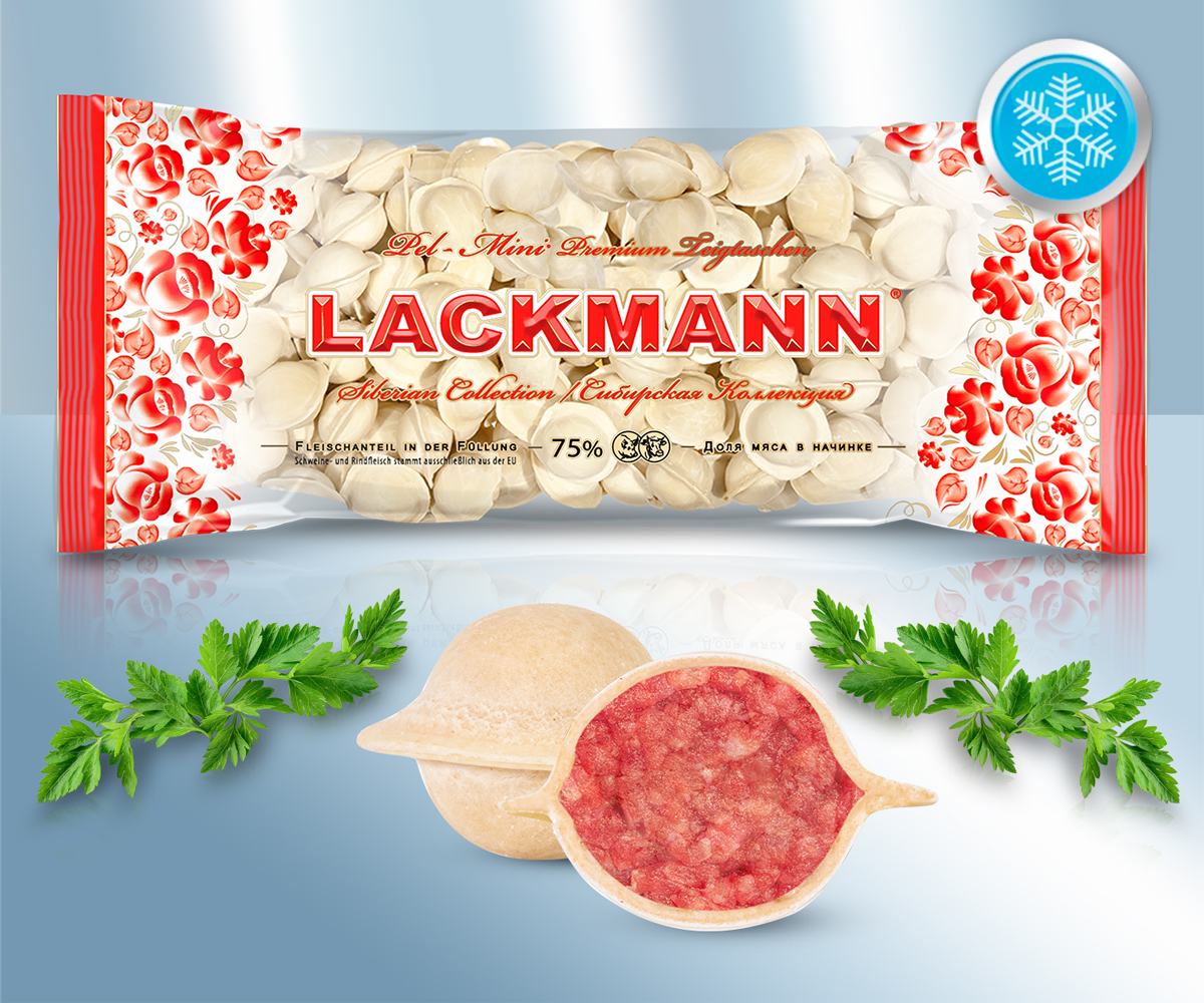 вареники с начинкой из сырой свинины и говядины (60%), замороженные, для варки. Состав: Свинина и говядина 46%, пшеничная мука, питьевая вода, цельное куриное яйцо, лук, пищевая соль, подсолнечное масло, cпеции. Не предназначено для употребления в пищу в сыром виде! Перед употреблением полностью разогреть. Инструкция по приготовлению: Выложите замороженные пельмени или вареники из упаковки в кастрюлю с 4-5л кипящей подсоленной воды. Доведите воду до кипения на сильном огне, время от времени помешивая пельмени (вареники). Как только пельмени (вареники) всплывут, убавьте огонь и варите их еще 10 минут. Размороженный продукт не замораживать повторно. Изготовитель: Lackmann Fleisch- und Feinkostfabrik GmbH, Carl-Benz Straße 10, 77731 Willstätt. Срок хранения при ≤ -18 °C до: Пищевая ценность на 100g: Энергетическая ценность: 1044 kJ / 249 kcal, Жиры: 12g, - из них насыщенных жирных кислот: 4,9g, Углеводы: 22g, - из них сахара: 0,6g, Белки: 14g, Соль: 1,2g,
